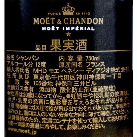 【箱なし】フランス シャンパーニュ モエ・エ・シャンドン・ブリュット 750ml | MHD正規輸入品
