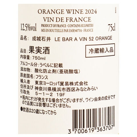 フランス Le Bar a Vin 52 オレンジ 750ml