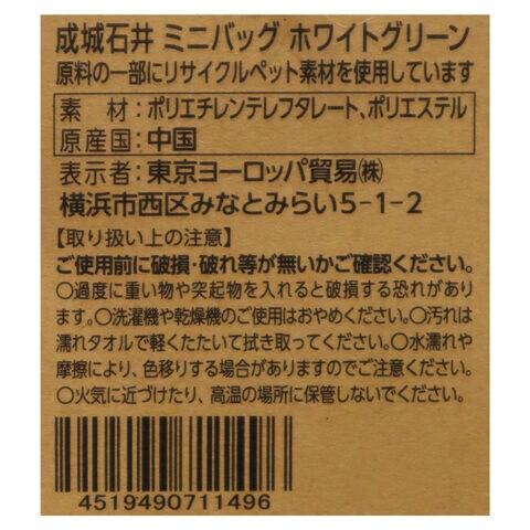 成城石井 ミニバッグ(ホワイトグリーン)/ ショッピングバッグ エコバッグ