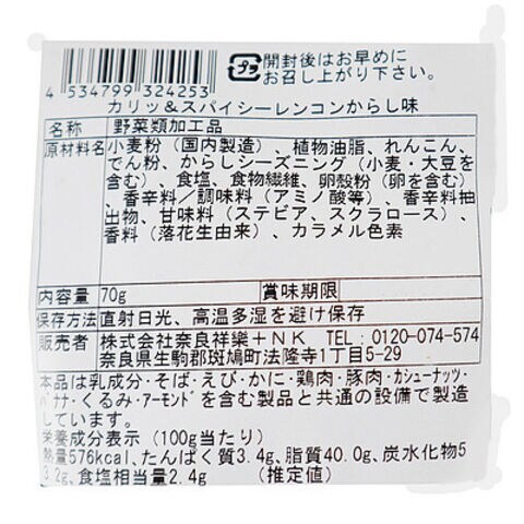 奈良祥楽 カリッ&スパイシーれんこん からし味 70g×6個