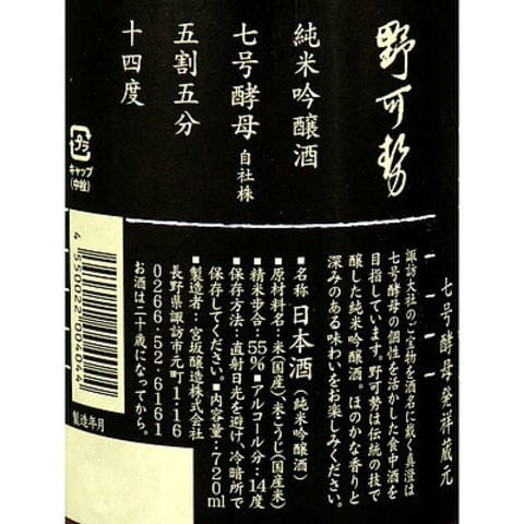 長野 真澄 純米吟醸 野可勢 720ml×3本