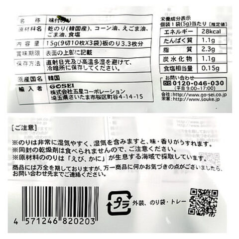 宋家 宋家伝統のり(3パック)緑 10枚3p