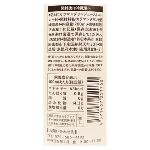 JAPAN JUICE 愛媛県産カラマンダリン 700ml