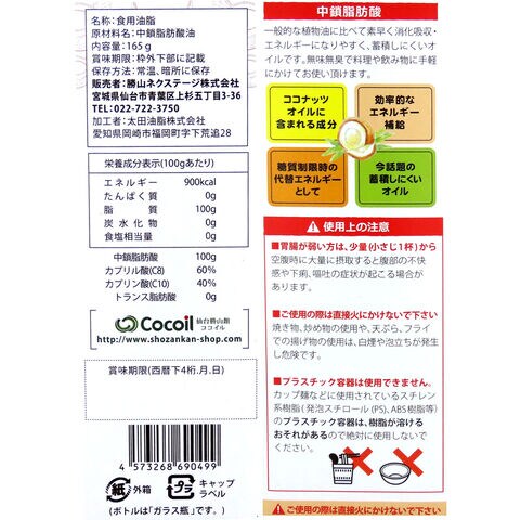 ●原材料名:中鎖脂肪酸油