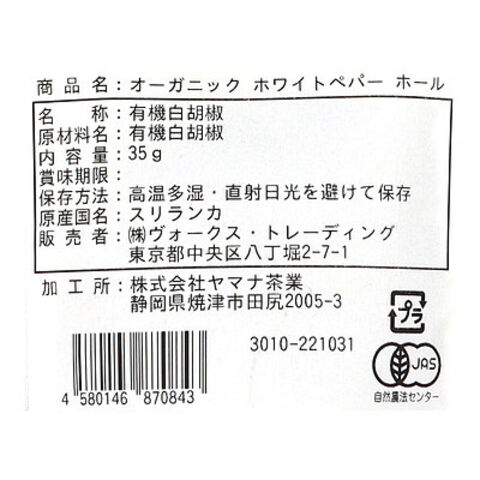 ヴォークス 有機 ホワイトペパーホール(袋) 35g