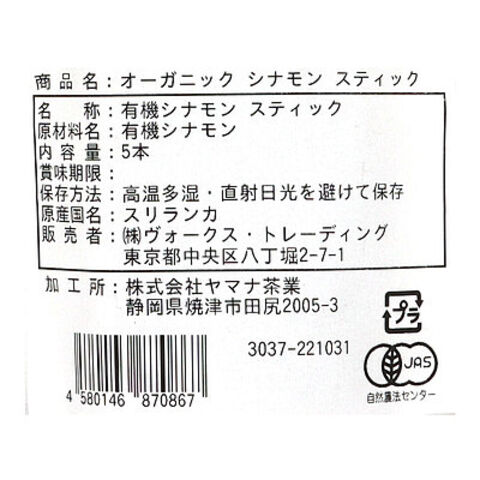 ヴォークススパイス 有機シナモンスティック(袋) 5本