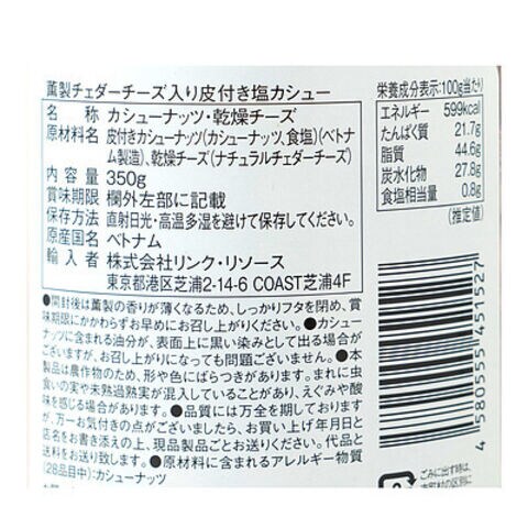 リンク・リソース 薫製 皮付きカシュー チーズ入り 350g