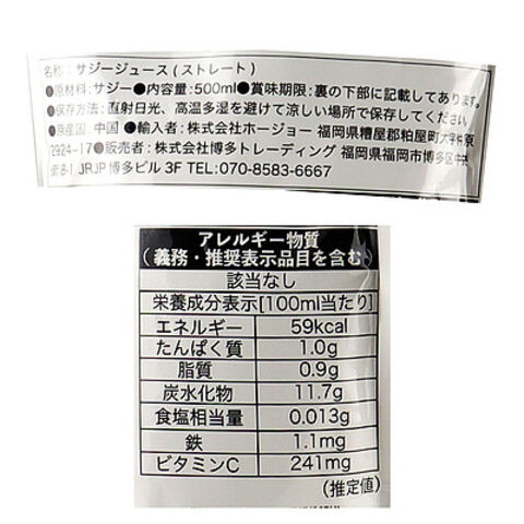 博多トレーディング 輝きのサジー (ストレート果汁100%ジュース) 500mll