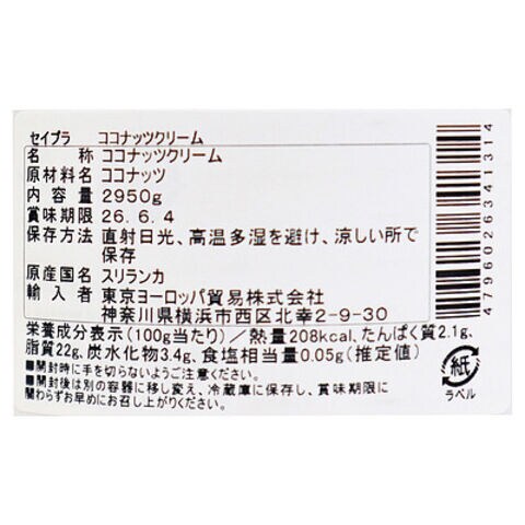 【送料込み】【訳あり】セイロンプラント ココナッツクリーム2950g※賞味期限2026/6/4| D+2 | 業務用規格