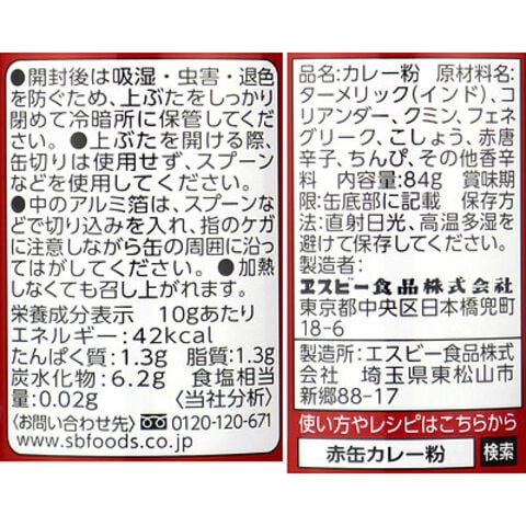 エスビー食品 カレー粉 赤缶 84g