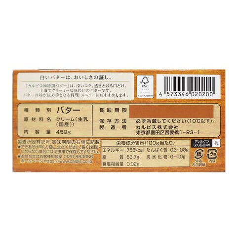 カルピス 特撰バター 食塩不使用 450g | 業務用規格