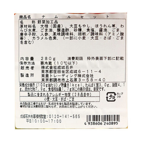 成城石井 ナムルセット 280g / 消費期限:発送日より2日間