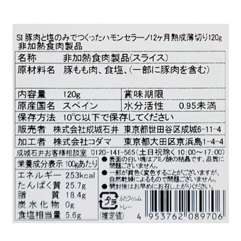 成城石井 豚肉と塩のみでつくったハモンセラーノ12ヶ月熟成 薄切り 120g