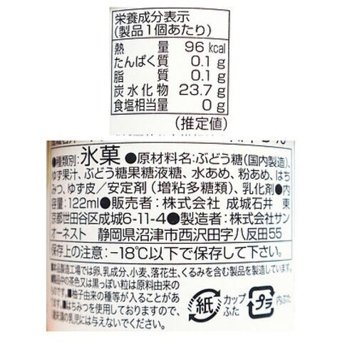 【送料込み】成城石井 高知県産ゆず果汁使用 ゆずSORBET 122ml×24個