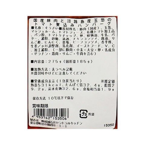 成城石井自家製 国産豚肉と淡路島産玉葱のトマト煮込みハンバーグ 2個入 (275g) | D+2