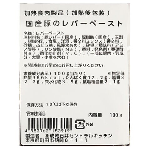 成城石井自家製 国産豚のレバーペースト 100g | D+2 / 年内お届け12月26日注文まで / 1月1-6日着不可