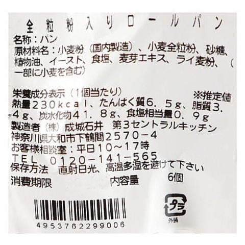 成城石井自家製 全粒粉入りロールパン 6個入 | D+2 / 消費期限:発送日より2日間