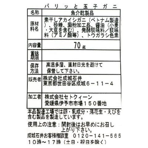 【送料込み】成城石井 おさかなスナックコレクション パリッと玉子ガニ 70g×6個