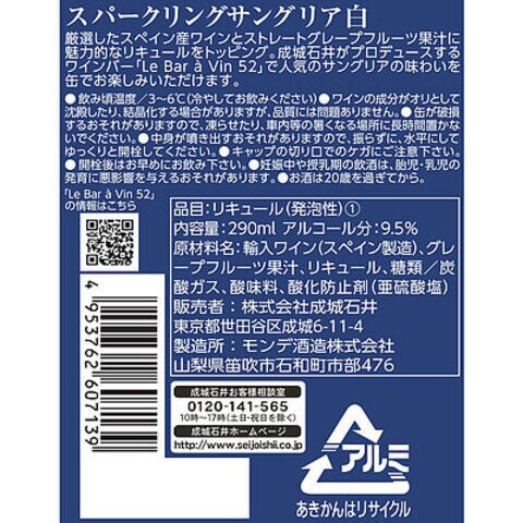成城石井 スパークリングサングリア 【ホワイト】 290ml×24本