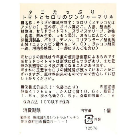 成城石井自家製 タコたっぷり!トマトとセロリのジンジャーマリネ 1個 | D+2 / 消費期限:発送日より3日間 / 年内お届け12月26日注文まで / 1月1-6日着不可