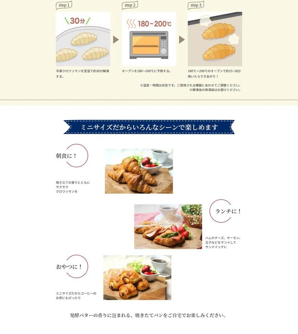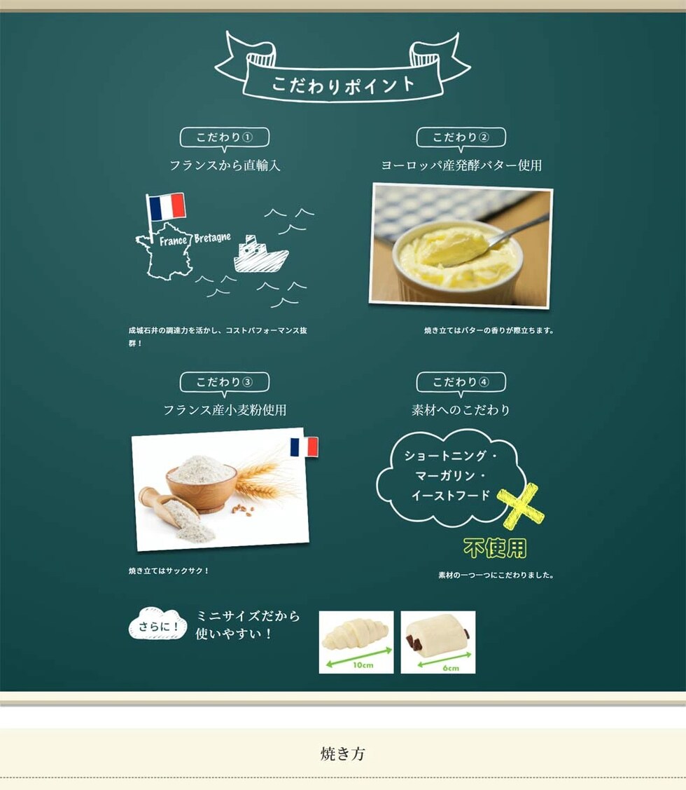 フランス産冷凍ミニクロワッサン 30g×約65個 / ミニパンオショコラ 35g×約70個