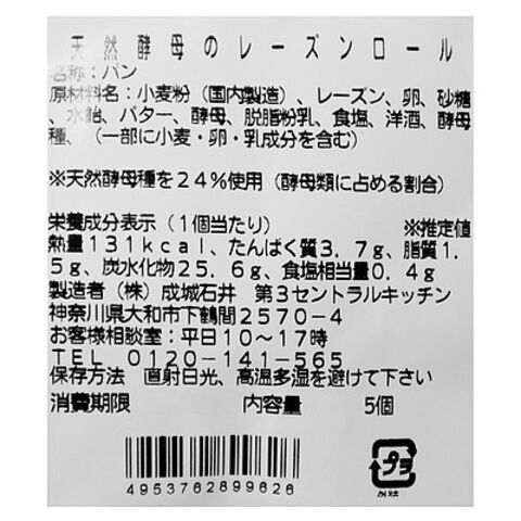 成城石井自家製 天然酵母のレーズンロール 5個 | D+2 / 消費期限:発送日より2日間 / 年内お届け12月26日注文まで / 1月1-6日着不可