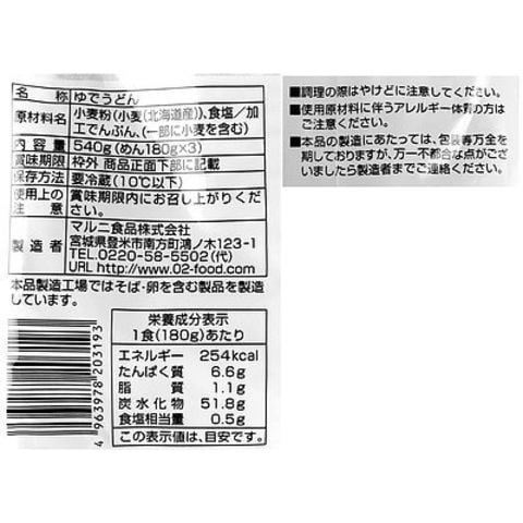マルニ食品 北海道産小麦100%使用 ゆでうどん 3食入 | D+2