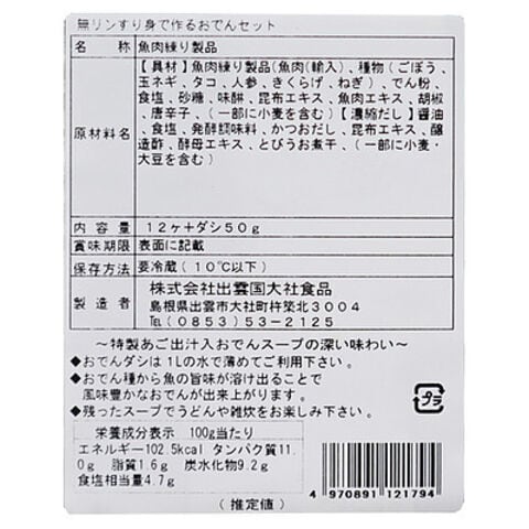 出雲国大社食品 おでん種(だし付き)12ヶ+だし/ 消費期限:発送日より4日間