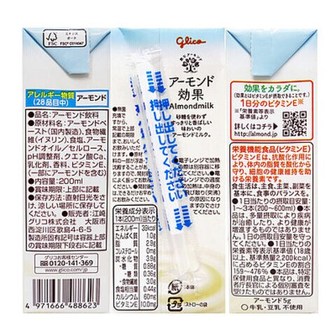 グリコアーモンド効果砂糖不使用 200ml×12本