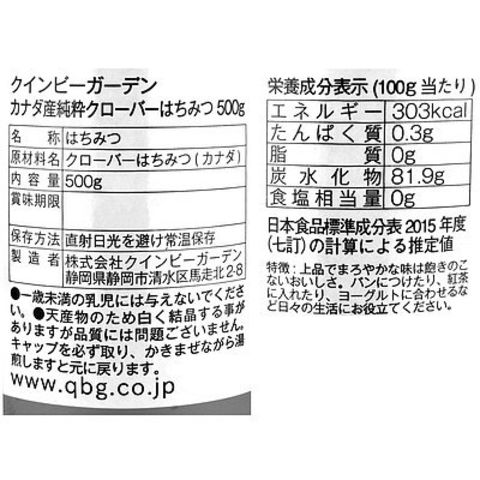クインビーガーデン カナダ産純粋クローバーはちみつ 500g