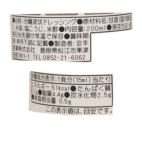 安本産業 お米だけでつくった日本生まれのおいしいドレッシング 200ml