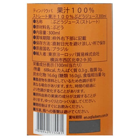 ティンバウバ ストレート果汁100%ぶどうジュース300ml