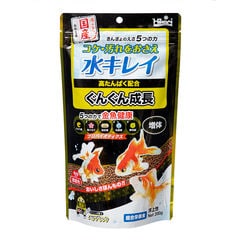 | 原材料 | 小麦粉、フィッシュミール、大豆ミール、かしこ、とうもろこし、スピルリナ、小麦胚芽、植物油、ビール酵母、海藻粉末、梅エキス、生菌剤、納豆菌・乳酸菌・酵母菌発酵抽出物、ビタミン類(塩化コリン、E、C、イノシトール、B5、B2、A、B1、B6、B3、葉酸、D3、ビオチン)、ミネラル類(P、食塩、Fe、Mg、Zn、Mn、Cu、I) |