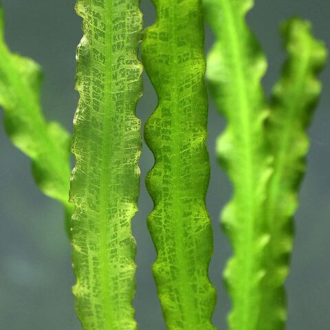 | どんな種類? | 育成難易度 → ★★★☆☆ レースソウ科(Aponogetonaceae)の植物。 学名Aponogeton crispus。crispus(crisped)[(葉の縁が)カールした]という意味。 育成が簡単でアポモゲトンの中では一番ポピュラーな種類です。 先の尖った細長い、透明感の無い葉を展開し、葉縁は名前のごとく中心の葉脈を軸にカールし、波立ちます。 葉は透明で深緑色から赤茶色です。育成のしやすいアポノゲトンです。花が咲いて結実しやすく、水槽内で安易に増殖が可能な種類です。 酸性から弱酸性、CO2添加あり、流れのあるところを好みます。 酸性から弱アルカリ性までのpHに適応し、養分吸収は主に底床から行い、泥土状で保肥力に優れた底床を用いると良いでしょう。 |