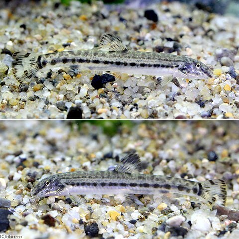 | 種類詳細 | コガタスジシマドジョウは地域によっての亜種が細かく分類され、種類によっては絶滅危惧種に指定されているドジョウです。 本種の特徴として、透明感のある体色と、断続的に途切れる縞模様があります。 また、体側の模様は変異が激しく他のコガタスジシマドジョウとの区別は斑模様での判別は非常に難しいものとなっております。 全ての型に共通するのは眼の下に棘があり、雄の胸びれの付け根の骨質盤は円形になる点です。 飼育は容易で、ドジョウ同様に飼育できます。 |