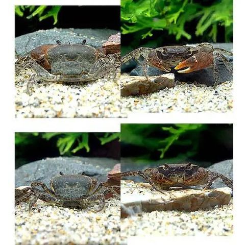| 混泳の注意点 | カニの中では攻撃性が低く複数匹飼育が可能ですが、過密になるとケンカでハサミや足を失うことがあります。十分なスペースと隠れ家を用意する必要があります。 動きの緩慢な魚は捕食されてしまうことがあります。また大型になる種には本種が捕食されてしまうことがあります。 |