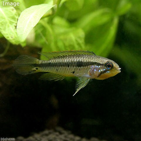 | 繁殖 | 流木やシェルターなどの陰に産卵するケーブスポウナーです。発情したメスは体色全体が黄色く色づき、オスメス共にテリトリーを主張するようになります。ペアが十分に発情していれば、シェルターなどに産卵をしメスが卵を孵化まで保護します。 産卵前は発情したオスに追いかけられるメスが、産卵後は卵を保護するメスに追いかけられるオスがボロボロにされることがあるので必要に応じて隔離をする必要があります。また混泳魚も追い回されることがあります。 卵が孵化し稚魚が自由遊泳後しばらくはメス親が稚魚を保護します。自由遊泳を開始した稚魚は孵化したてのブラインを食べることが出来、この頃には親魚は別の水槽に移した方が良いでしょう。 |