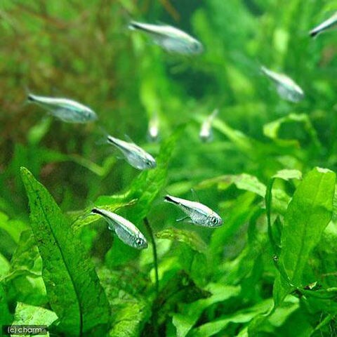 | 種類詳細 | ガイアナ原産のカラシンです。ゴールデンテトラと呼ばれるものは2タイプ存在し、本種はアームストロンギ(armstrongi)種です。 体の輝きは体表面に付着しているバクテリアによるものと言われ、数種のカラシンで見られます。 本タイプは銀に近い発色を見せ、体側にブルーからオレンジのラインを持つのが特長です。 このバクテリアによる輝きは長期飼育では褪せてしまい、魚病薬によっても色が落ちやすいです。 よく群れるので、群泳させるととても美しく、見ごたえがあります。飼育も容易で丈夫で温和な魚です。 |