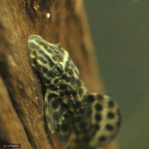 | 種類詳細 | レンジャーインペリアル・プレコの名で比較的最近の2003年に紹介された種です。 美しい色彩をもつ2cm程の幼魚での流通が多く、最近になり大型になるセルフィン・プレコの仲間であることが分かりました。 黄色味を帯びた褐色の体色に黒いスポットが特徴的な種です。飼育は導入時に注意をすれば丈夫な種で、コケ食いも良いです。 |