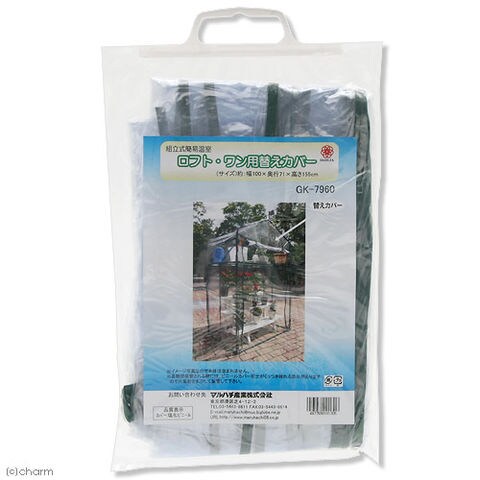| ご注意 | ※本品は組立式簡易温室「ロフトワン」の専用替えカバーです。他の製品にはご利用いただけませんのであらかじめご了承ください。 ※長期間保管される際に、ビニールカバー同士がくっつき破れる恐れがありますので、片栗粉をまぶして保管してください。 |
