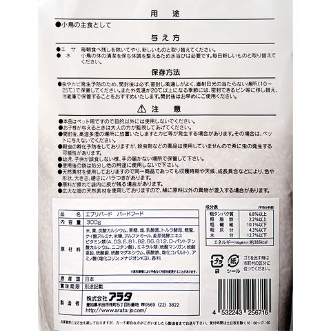 _animal アラタ エブリバード バードフード 300g 4532243256716 20180415 KEIRYOU YMYM 小動物 鳥 ペレット 穀物 総合栄養食 ビタミン ミネラル カルシウム 乳酸菌 主食 セキセイインコ 小鳥 小鳥全般 小鳥用主食 bnr_1904_aarata opa2_yoko 餌 えさ フード ゴハン ご飯 y18m04