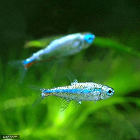 | 種類詳細 | ブラジルのネグロ川、コロンビアのオリノコ川原産のグリーン・ネオンのプラチナタイプです。他のプラチナタイプのカラシンに比べ、プラチナが多く入ります。銀のプラチナに完全に覆われる個体も多く、各ヒレの付け根にまでプラチナが入るものもいます。プラチナタイプは発光バクテリアの付着によるものといわれますが、実際はまだまだ不祥なところが多く確かなようではないです。飼育はグリーン・ネオンに準じますが、魚病薬はプラチナが色褪せするため、使用しない方が良いでしょう。 |