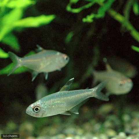 | 種類詳細 | ブラジル、ネグロ川、コロンビア原産のカラシンです。細身な体形と透明な体色が特徴的な種で、単独での流通量はあまりなく、他魚に混じってくる程度です。ファントム系のような背ビレの模様を持ちますが、体系はスレンダーという特徴は他種にはあまりなく、際立った個性といえます。しかし、体色は透明に近くほんのり背骨付近がピンクに色づく程度で、やや地味な体色のせいかメジャーになれずに玄人好みの種になってしまっています。飼育は容易で温和で丈夫な種です。 |