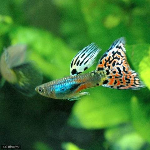 | 飼育のポイント | 病気にさえならなければ、水質の悪化や低温に強く、数ペアなら小さな水槽で十分に飼育できます。 特に国産グッピーは日本の水に慣れているため、導入時の失敗が少ないです。酸性の水を好まず、pHが極端に低いと調子を崩します。 また、尾ビレが傷つくと病気になりやすいので、 レイアウトや混泳魚には注意が必要です。尾ビレの大きな品種は水流を弱めた方が良いでしょう。 |
