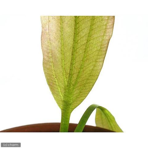 | どんな種類? | 育成難易度 → ★★★☆☆ 新芽は赤が強く出ます。水中葉は葉が長く、赤みが強く出て、葉縁は波打ちます。 オモダカ科(Alismataceae)の植物。南米に幅広く分布する植物で、多くの種類は水中葉を展開するため水槽内のセンタープラントとして古くから利用されている種類です。 東南アジアで多くの改良品種が歳出されていますが、ファームにより多少の草姿の違いが見受けられます。 ある程度の照明(60cm水槽で20W2灯程度)と、できれば外部式フィルターや水中フィルター等のCO2を逃がしにくいタイプのフィルターの使用がお勧めです。 また肥料分の吸収の多くを根から行う為、底床は厚めに敷いて下さい。 古くなった葉はコケが付きやすくなり、色もくすんできますので、できるだけ付け根の近くからハサミでカットしてください。 植え替えを行うと株が弱ります。頻繁に植え替えを行うと株の体力を消耗しきり成長が止まってしまったり、最悪枯死してしまう場合もあるので注意が必要です。 逆に長期間植え替えずに維持すると水槽の半分を占めるほどのサイズとなる場合もあります。 植え直しを行うことによりサイズを調整することができます。 ただこの場合、根がかなりの広範囲に渡ってはえているいることが多いので、底床にはさみを入れて根をカットしながら慎重に引き抜いてください。 |