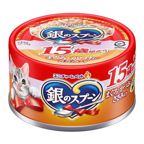 de20_unigpw _neko 4520699608234 銀のスプーン 缶 15歳近づく頃から まぐろ かつおにささみ入り 70g 猫 フード キャットフード ウェットフード ユニ チャーム 高齢猫 シニア猫 缶詰 20141104 OKB ginsp_tan0201 opa2_choku p15ginsp y14m11