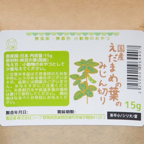 国産 えだまめの葉のみじん切り 15g 小動物のおやつ うさぎ ハムスター 無添加 無着色 関東当日便