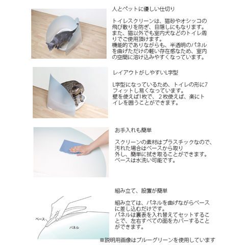 OPPO ToiletScreen ブルーグリーン トイレットスクリーン 猫用品 トイレ 目隠し インテリア テラモト パネル 飛び散り防止 半透明 簡単 おしゃれ 20150317 YIH ついたて スクリーンoppo_neko リビング 見せる 魅せる 隠す opa2_choku 猫トイレ 猫砂 飛び散り 飛散 砂 散らかし 防止 カバー コーナー とびちり トイレ砂 y15m03