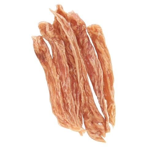 | 特長 | ●低脂肪な鶏のササミを小型犬にも食べやすく細切りにし乾燥したおやつです。 ●添加物は一切使用しておりません。 ●国内の契約工場で加工されました。 ●素材の持つ「栄養」や「おいしさ」を活かした自然のごちそうです。 |