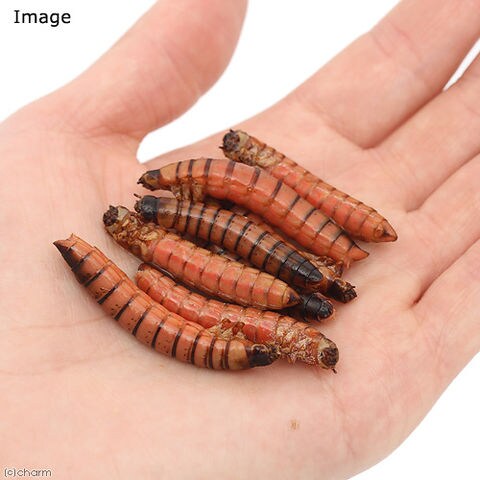 | 特長 | ●保存に便利な冷凍餌です。 ●生きたまま急速冷凍で凍らせているので鮮度抜群、与えたいときに与えたい量だけを使用できます。 ●レッドミルワームはアスタキサンチンを含んだ餌を与えて育てたビッグミルワームです。 ●赤系の色揚げをしたい生体に与えると赤みが強くなります。 ●アジアアロワナやピラニア、トカゲ、水亀、両生類などにオススメです。 |
